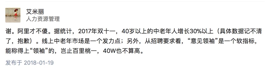 知乎上有网友提问,“用40万年薪待遇招60岁以上老人!阿里HR是不是傻?”